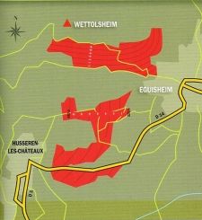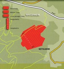 On the southern fringes of Wintzenheim, the vineyard faces southeast, at an altitude of 270 to 360 meters, extended across a large wind-sheltered slope.